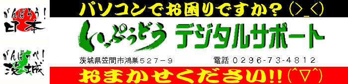 いっぷうどうデジタルサポートのWebサイトへようこそ(^▽^) 当サイトをご覧いただき誠にありがとうございます。 茨城県を中心に、個人・自営業・企業のお客様を対象として、 ○ パソコンまわりの設定・修理・操作指導 ○ 財務・経理・労務業務の効率化サポート ○ 営業支援ツールのご提案・製作 ○ コンピュータシステムの構築・保守 ○ ネットワークの敷設・保守 を行っております。 皆様にパソコンをもっと便利に、もっと快適にお使いいただける。 それがいっぷうどうの願いです。 パソコンを使っていて、不便だな、何とかならないかな、こんなことできないかな、と思ったら、いますぐお電話くださいね。